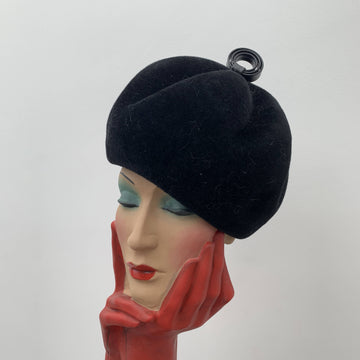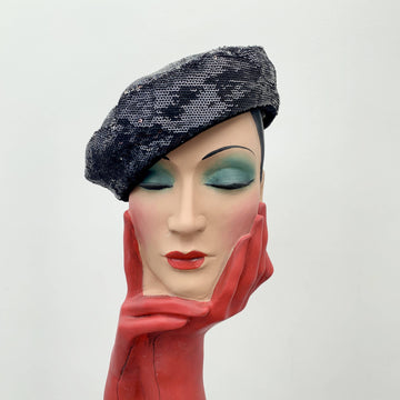Vintage black sequinned beret hat by Stephen Jones (Miss Jones) made in England