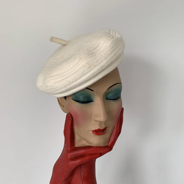 classic Vintage white beret hat by Stephen Jones MIss Jones “ Time travel” collection